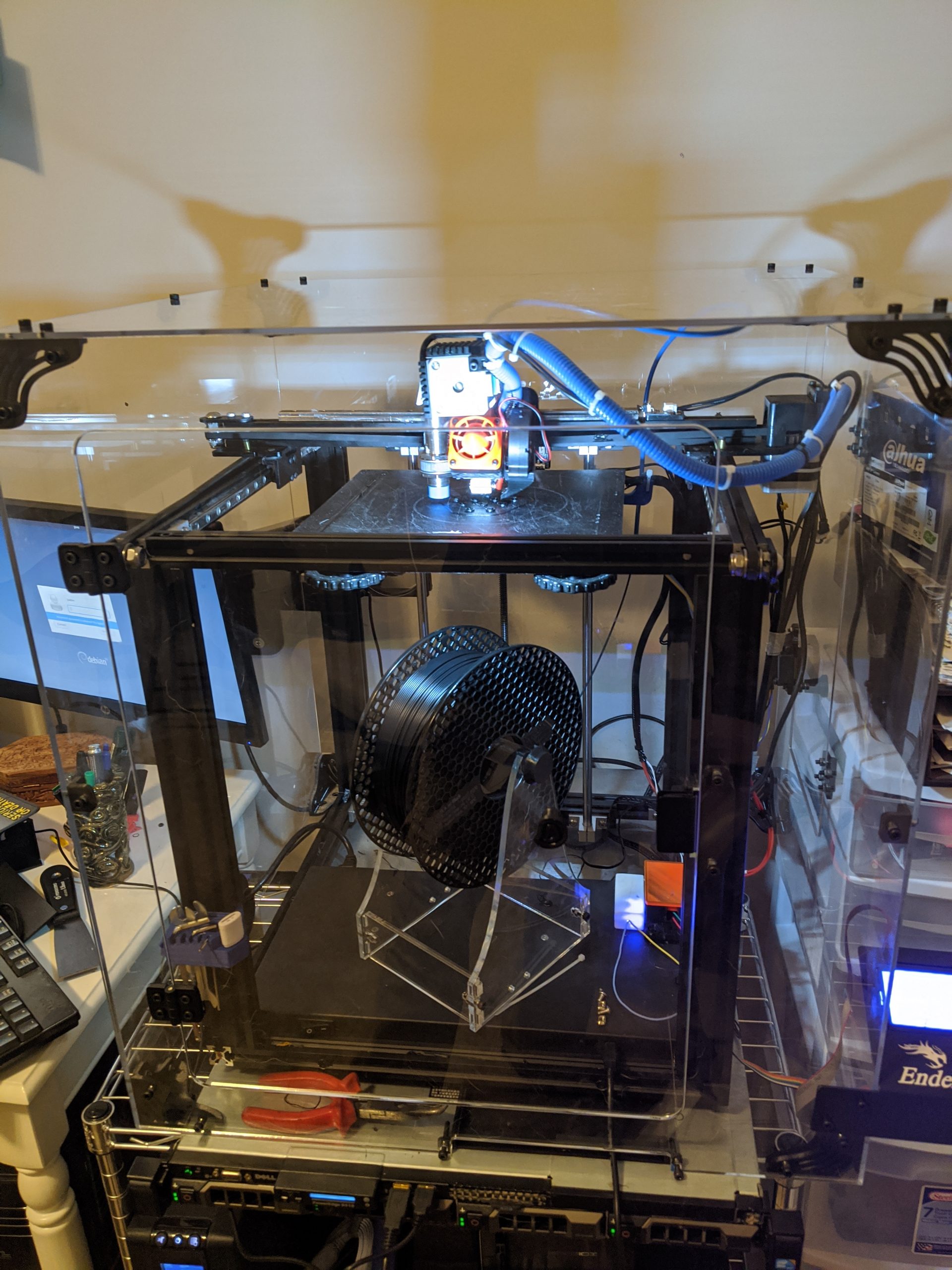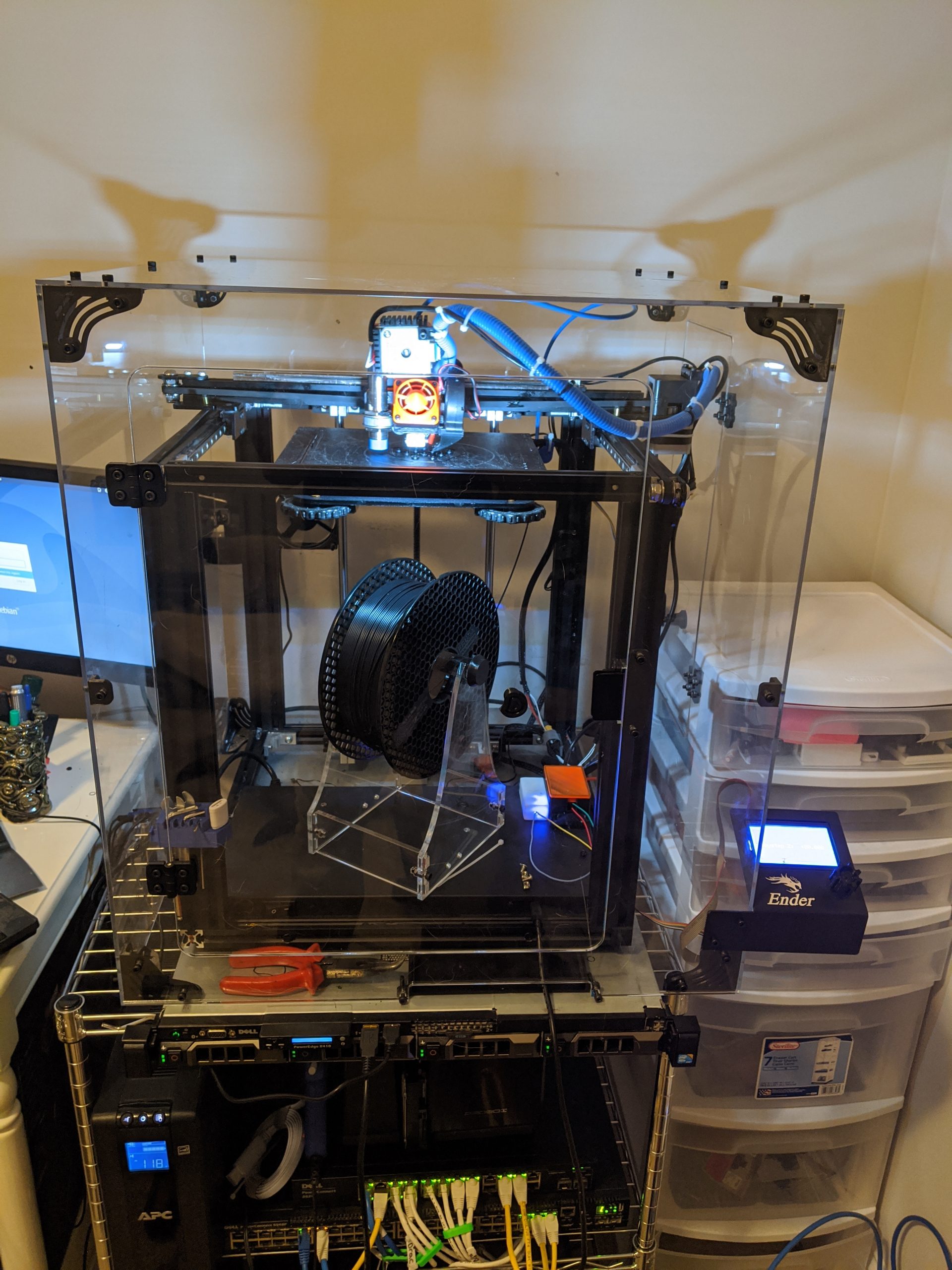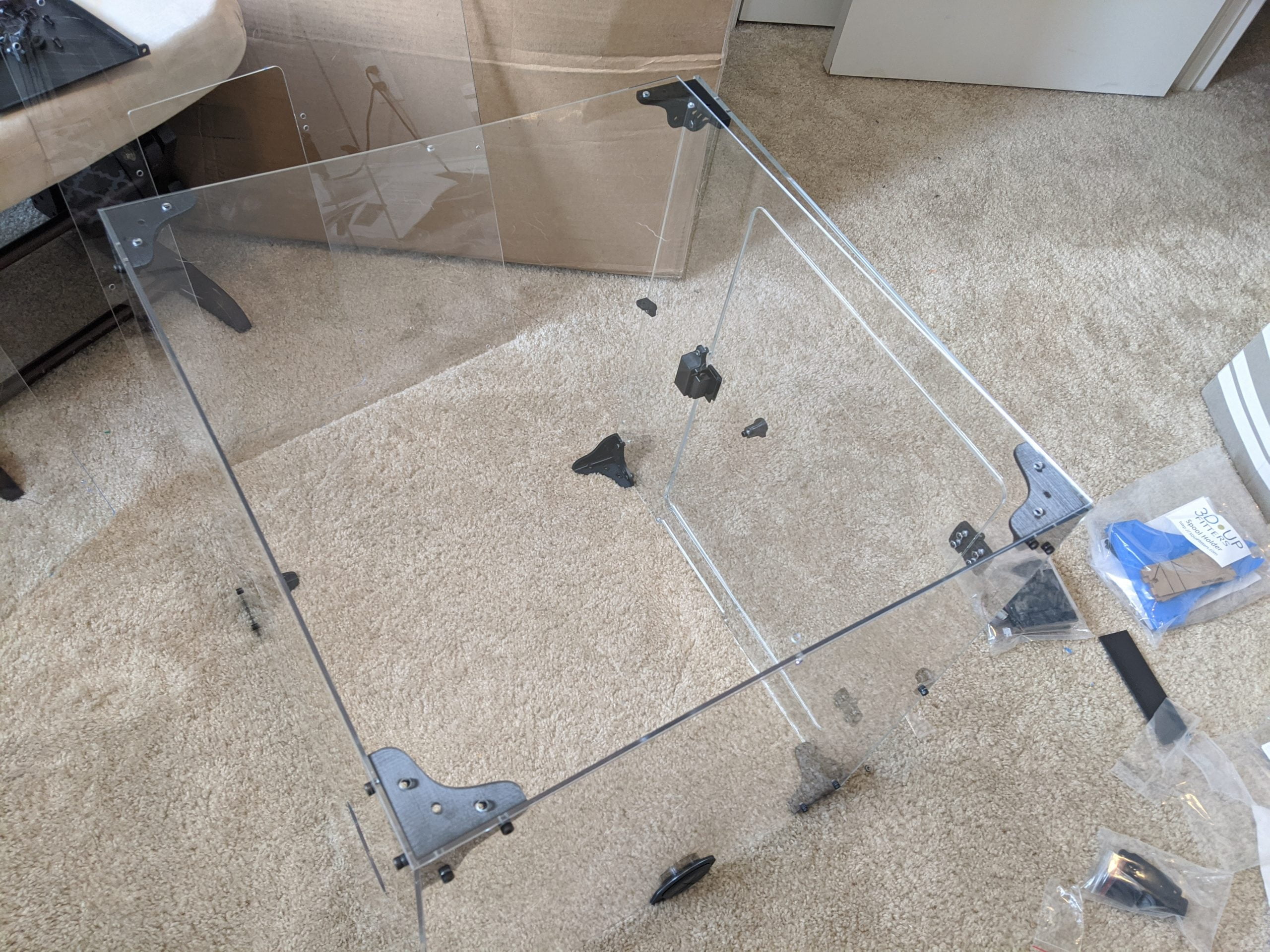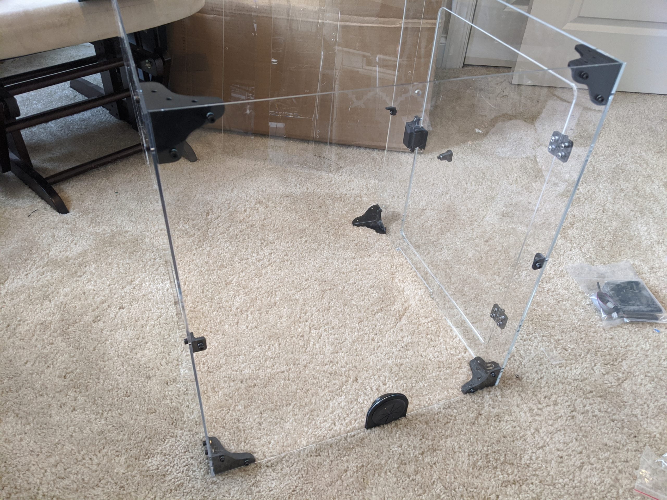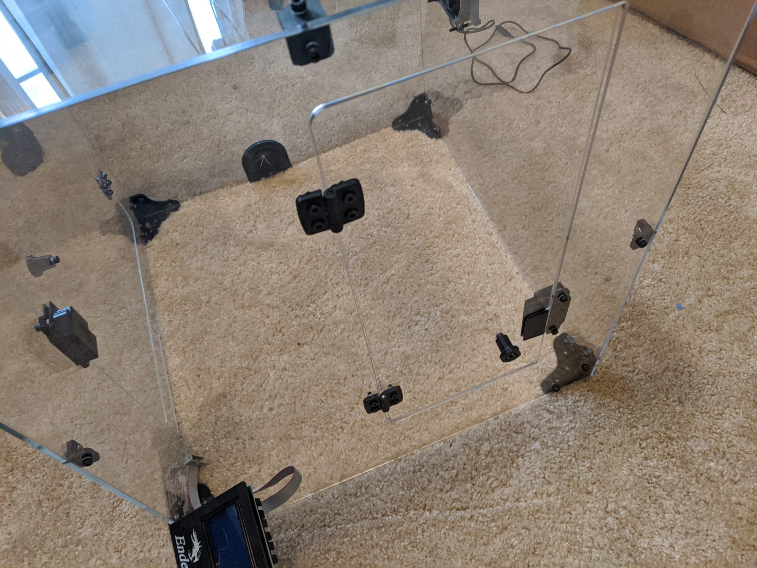 The initial setup of the enclosure was just a little bit cumbersome. Ensuring the corner brackets and acrylic panels are facing the correct way is the hardest part. While doing the setup, we took tons of pictures and even several short videos. Even with all of the wasted time, we still completed installation within 1 hour and 30 minutes.