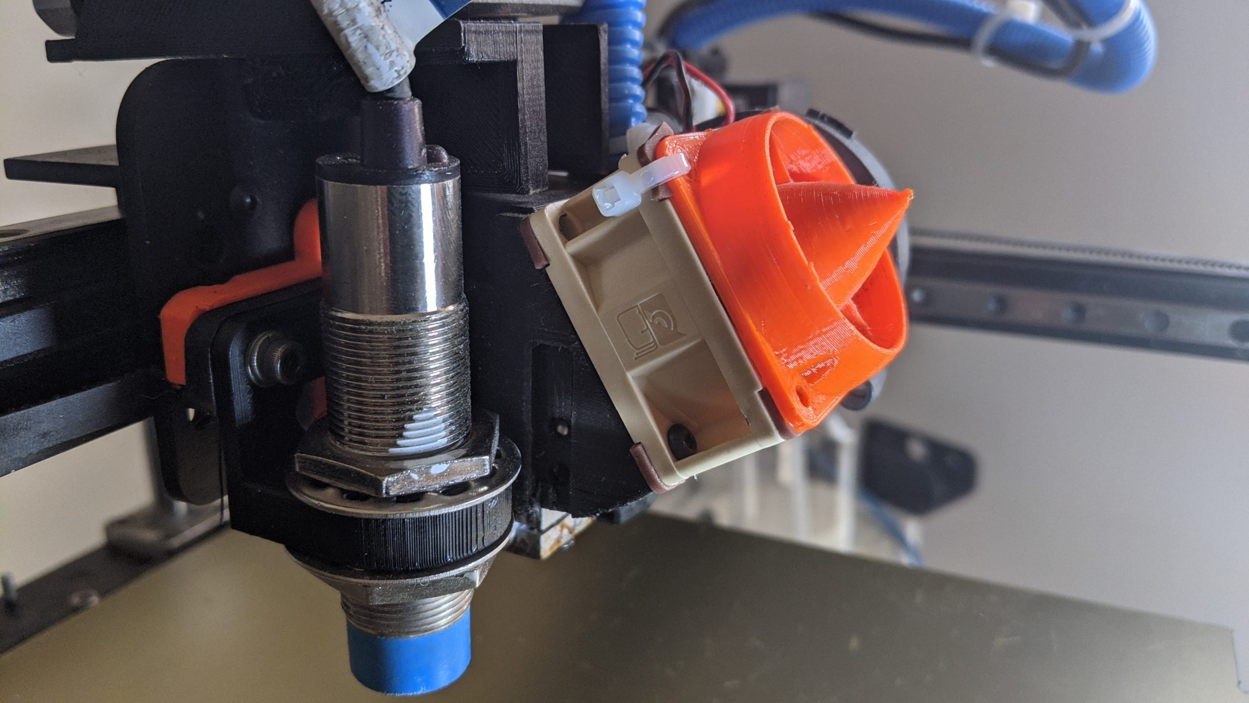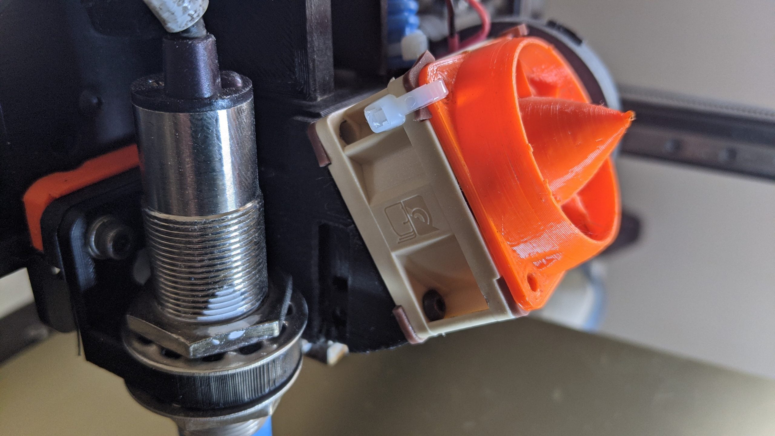 - Zip Ties, and assorted hardware for your hot-end mounting system (add +12mm to your existing hardware for correct length, or attach on inside of the fan as seen in my photo)