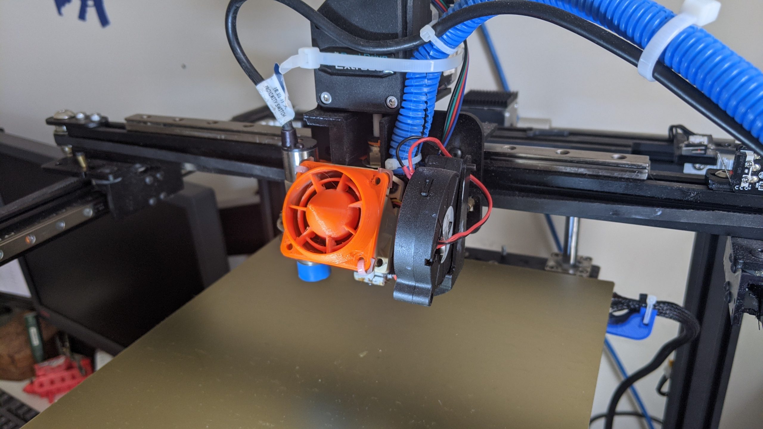 NOTE: I am using the HeroMe Gen5 system with TH3D Tough Hot-End! You can still upgrade your fan, but likely not with the stock mounts. Any HeroMe and many other custom mounts will be fine though! Make sure your fan is on the exterior of the mount like in my photo before attempting this upgrade.